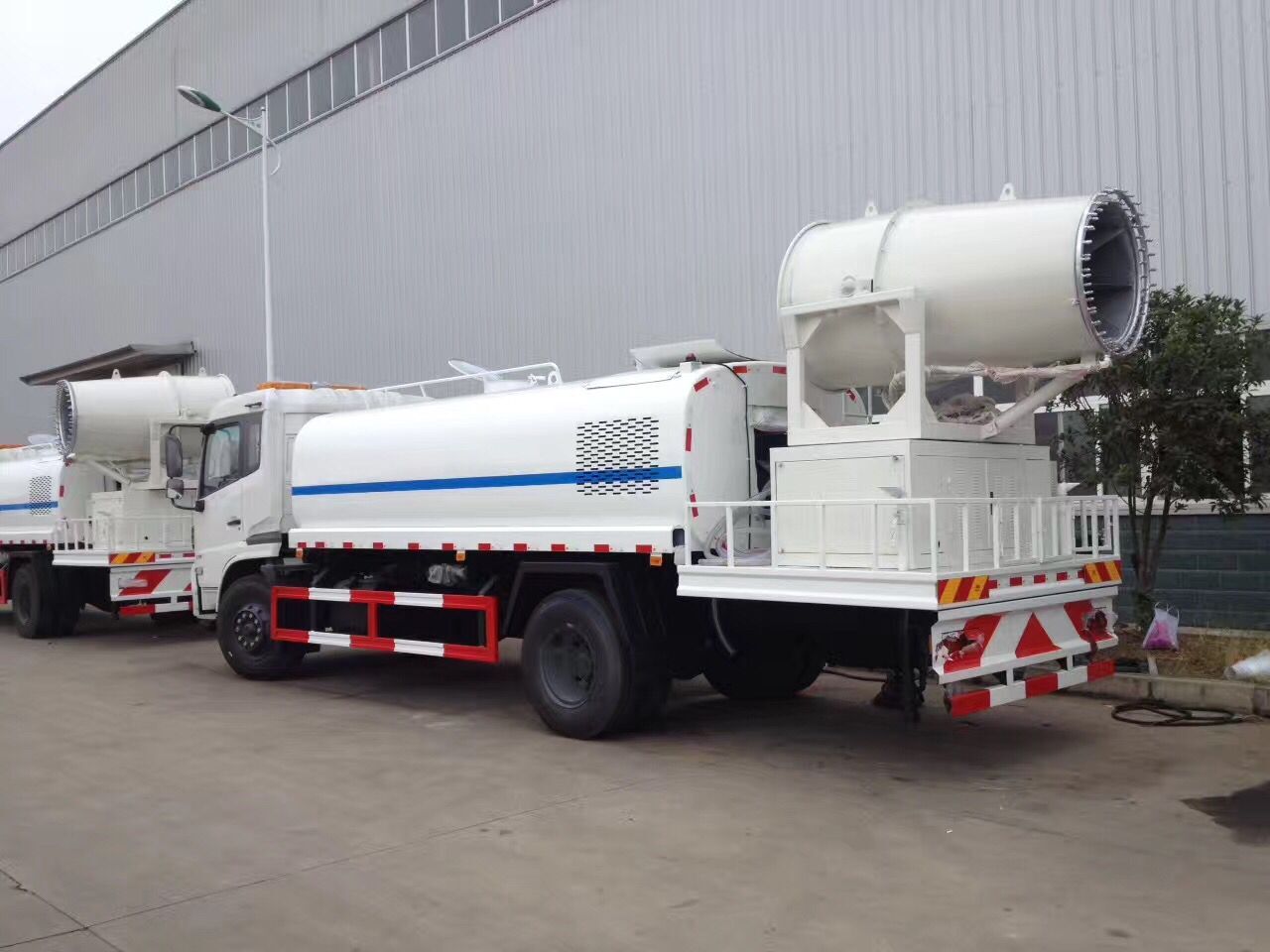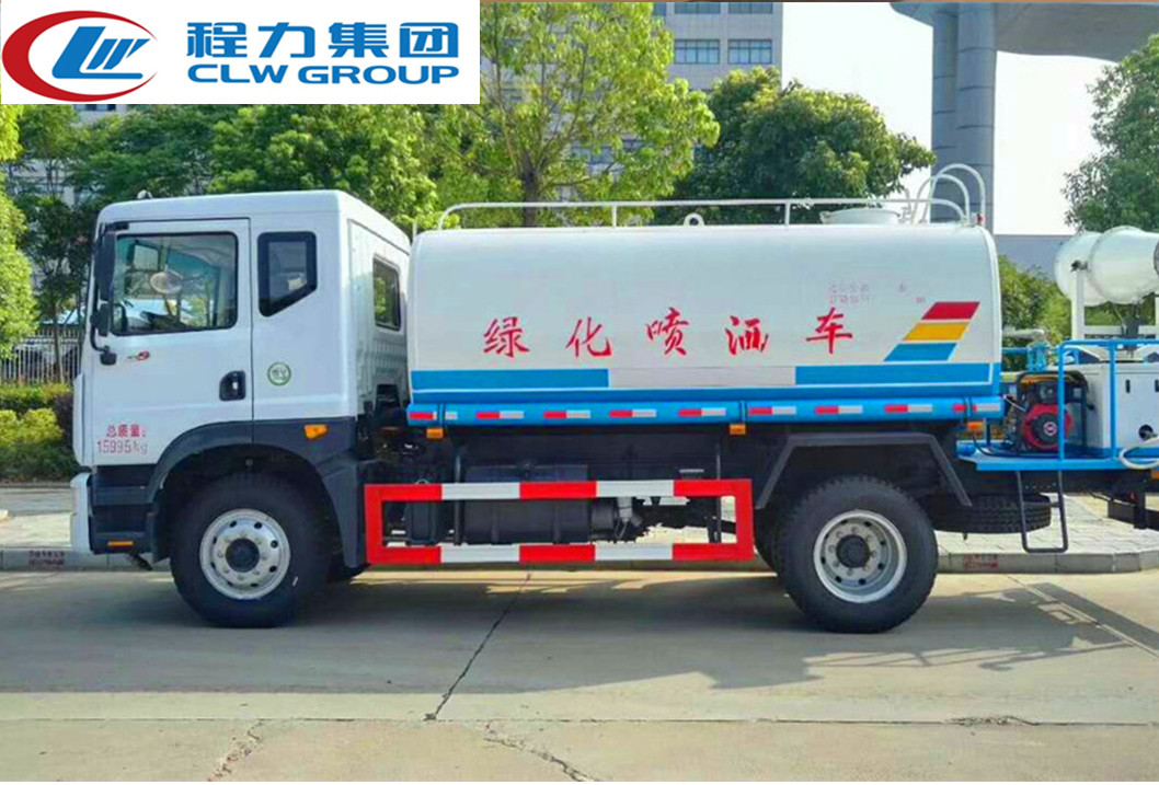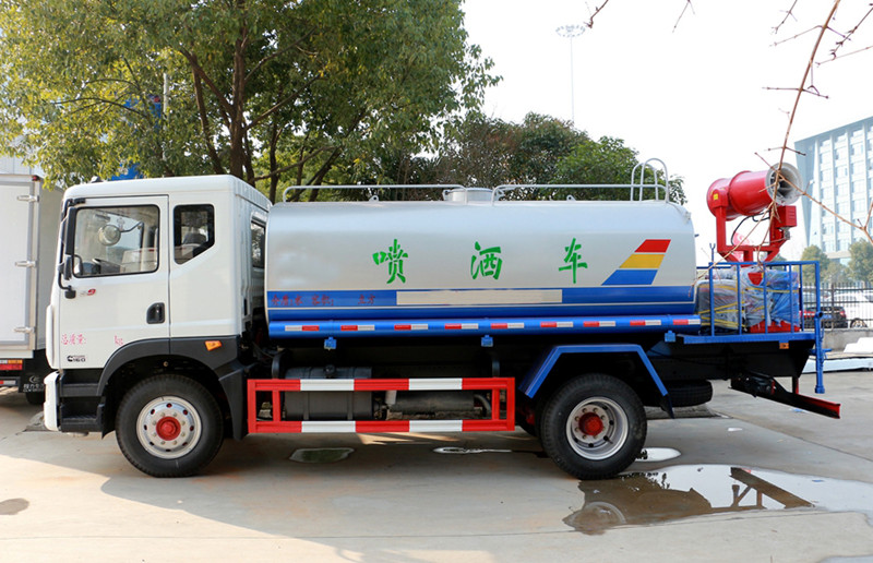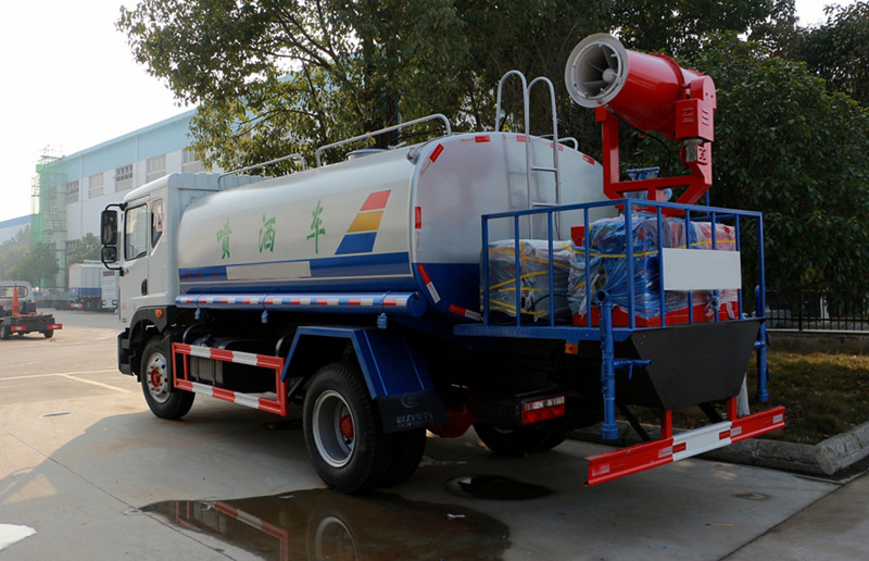 上装配置:罐体有效容积13立方,罐体采用国标Q235碳钢,罐体厚度4mm,自吸自排水泵,带前冲装置,后洒装置,左右侧喷装置,尾部带有安全操作平台,带消防接口,自流口,两根输水管,尾部绿化高炮,绿化高炮可调节直冲,大雨,中雨,毛毛雨雾,可以连续调节,360度旋转;安装柴油发电机,喷雾机扬程25-35m,可遥控操作,±180度旋转;