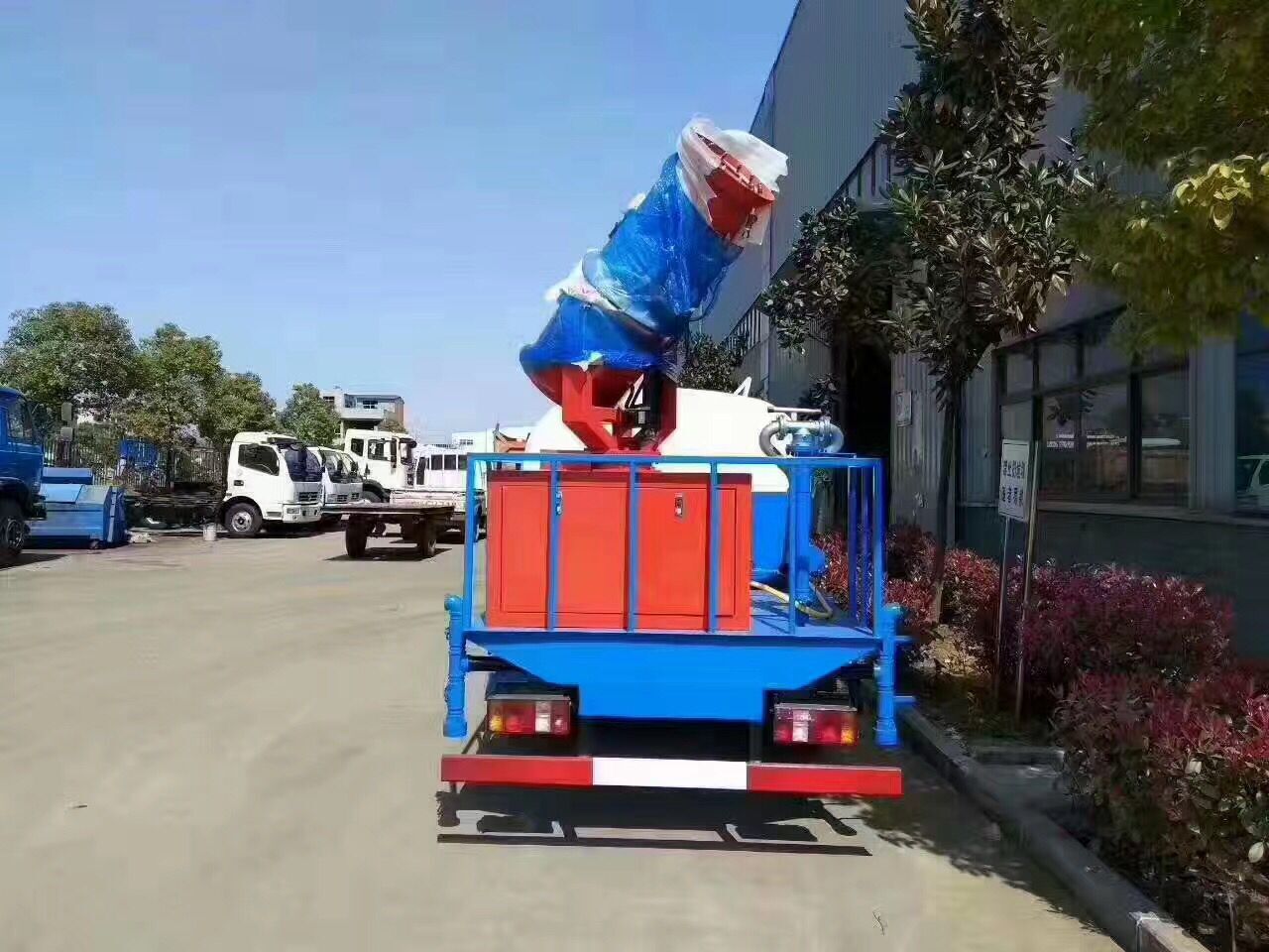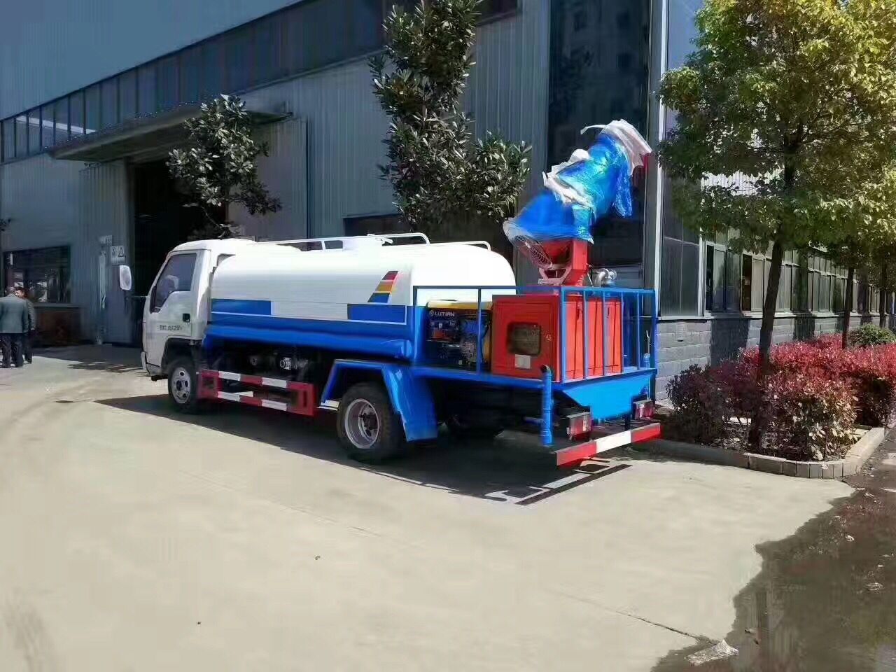 上装配置:罐体有效容积20立方,罐体采用国标Q235碳钢,罐体厚度4mm,罐体内部做防腐,自吸自排水泵,带前冲装置,后洒装置,左右侧喷装置,主管路镀锌处理,尾部带有安全操作平台,带消防接口,自流口,两根输水管,尾部绿化高炮,选装喷雾机25-120米,选装发电机组。